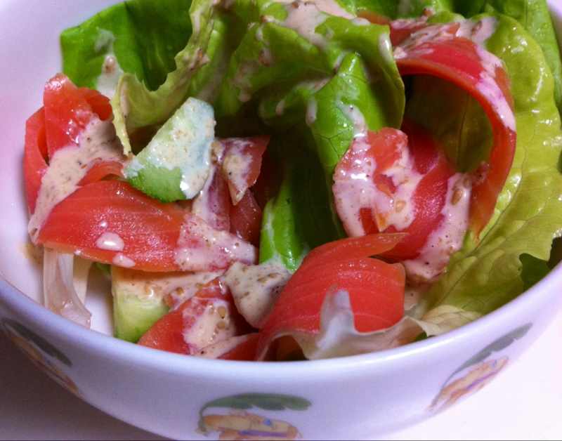スモークサーモンのサラダ とろろ昆布のドレッシングで Fino Blog
